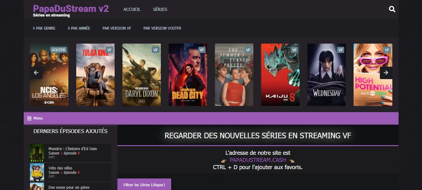 L’adresse que l’on considère comme la vraie de Papadustream est celle-ci : https://papadustream.cash/.