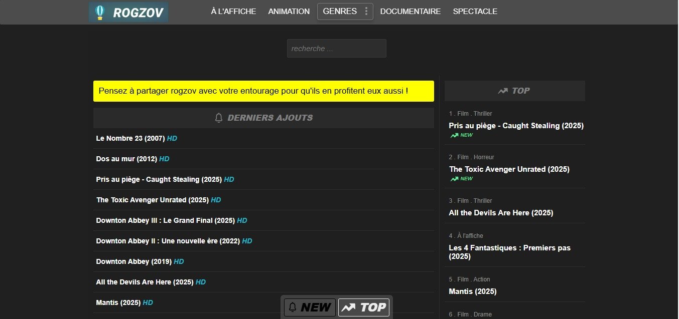 Il faut savoir que Rogzov est différent des autres types de sites. Ce n’est pas un site de torrents qui permet de télécharger des films gratuitement par échange entre utilisateurs. Ce n’est pas non plus un site de téléchargement direct (DDL) où vous pouvez enregistrer les fichiers sur votre appareil. Sur Rogzov, les vidéos sont juste diffusées en haute définition sur votre écran. Vous ne pouvez pas les garder. La plateforme fait attention à l’expérience utilisateur. Elle essaie de limiter les interruptions. Cependant, comme beaucoup de sites gratuits, vous pouvez parfois voir des pop-up ou des pubs. Le catalogue est constamment mis à jour et de nouveaux films sont ajoutés régulièrement pour vous permettre de suivre un film dès sa sortie.